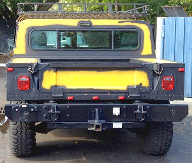 A hajlításoknál különösen nehéz úgy dolgozni, hogy ne látszódjon ki az eredeti szín, ezt oldotta meg egyszerűen a nem ismert fóliázó. A kérdéses Hummert egy kereskedés számította be egy másik autóba, és azért döntöttek a mattfekete szín eltávolítása mellett, mert az már eléggé viharvert állapotban volt.