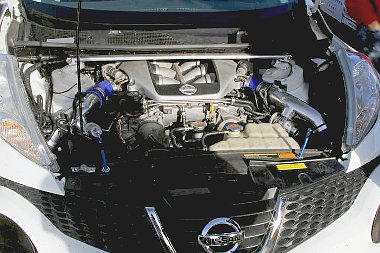 Nekik is megtetszett az ötlet, hogy a GT-R technikáját plántálják a kis kategóriás szabadidő-autóba, és ezt meg is valósították. Az eredmény egy mezítlábas Nissan Juke R lett, amely még nincs teljesen befejezve. Nem csak a kerékjárat-szélesítések ideiglenesek, de az első lökhárító alatt is szabadon lógnak a különféle hűtők.