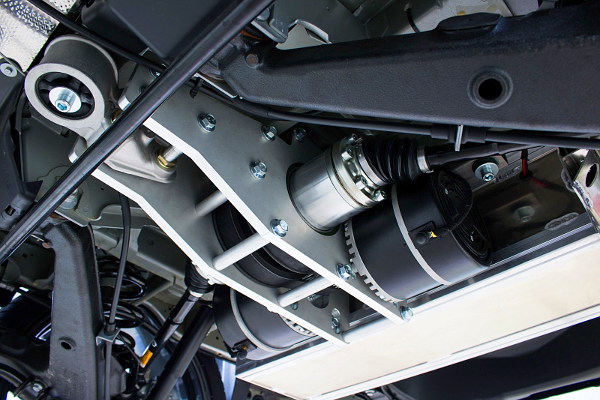 Nem ez az első eset, hogy egyszerre több motor egy Volkswagen Transporterben, de eddig általában belső égésű motorból hordott kettőt a kisbusz: elöl a hétköznapokon a gyári turbódízel hajtott, hétvégén meg a csomagtér helyére szerelt Porsche boxert élvezte a tulaj. Az MTM azonban most kevésbé radikális, de annál hasznosabb átépítést készített: kerékagy-villanymotorokkal látta el a hátsó tengelyt. Ezzel egyfelől dízel-elektromos hibrid hajtású lett a Transporter, másfelől virtuális összkerékhajtást is kapott.