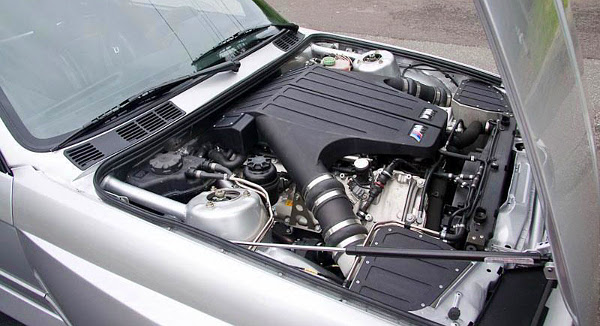 Szóval miután kész volt a karosszéria, abba nem a gyári technikát szerelték vissza, hanem a fiatalabb BMW M autókból válogatták össze a legjobb elemeket. Az erőforrás például az előző M5/M6-ban alkalmazott V10-es szívómotor, persze nem szériaállapotában. A Dinan cég által 40 000 dollárért kínált átépítőkészlet segítségével 5,7 literre növekedik a lökettérfogat, a teljesítmény pedig 630 lóerőre ugrik – jelen esetben ennél kicsit kevesebb lehet a tényleges teljesítmény, hiszen a szűk motortérben nincs hely a szabadabb légáramlást biztosító szívósornak és kipufogórendszernek.