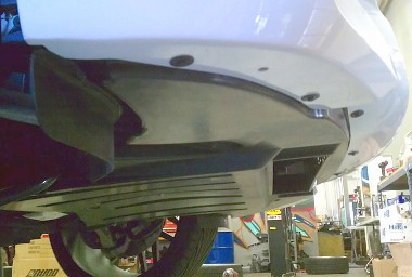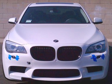 A rend kedvéért még a BMW-től vásároltak egy M5-ös alsó műanyag motortér-burkolatot, amelynek a felfogatását módosították a 7-es sorozatnak megfelelően, így nem csak szemből tökéletes az átalakítás, de alulról nézve is az. Nem valószínű, hogy az M GmbH szakembereinek is nehézséget okozna ez a műtét…
