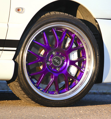 A futómű már ránézésre is magas, ennek az oka prózai: napi használatú a kocsi, és olyan utakon kell továbbjutni, ahol ültetett autó nem boldogul. De ez a futómű a gyári sportváltozat, keményebb, feszesebb, stabilabb. Plusz Zsolték készítettek első rugótorony-merevítőt, ez is jótékonyan hat. Akárcsak a 8×17 colos felnik a 205/40 R17-es gumikkal. A felnikben annyi munka fekszik, mint másnak az egész kocsijában. Megvásárlás után savval mindent lemartak a keréktárcsákról, majd ment a homokfúvóhoz. Azután krómozták, majd Miamiból rendelt spéci lakkal fújták, a középrészt színes lakkal, majd az egészet színtelennel. A felnik alá is érdemes benézni. Elöl 305 mm átmérőjű tárcsákat találunk négydugattyús Brembo nyergekkel, hátul pedig a régi dobfékek helyett az 1,6-os tárcsafékeit.