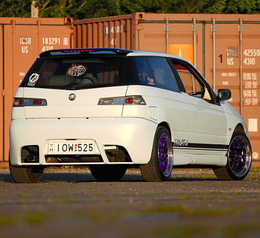 A kocsit 2004-ben vásárolta, svájci autó volt, hölgy tulajjal. Motorja a kisebb, 1,4 literes, a felszereltsége szerény, a belseje egérszürke. Viszont a hangulata jó, pontosan olyan, amit fokozni érdemes. Zsolt szép szisztematikusan nekiállt, nagyobbrészt maga, kedvese és barátai segítségével átépíteni az autót. Lemezmunkával eltüntették a kilincseket, új, egyedi lökhárítókat és küszöbidomokat kozmetikáztak az autóra. Kicserélték a hátsó lámpákat, valódi karbonszövettel vonták be a tükröket és az első Alfa-pajzsot. Idén februárban pedig színt váltott az autó: kékből gyöngyházfehér lett. Az új szín fólia, amelyet fekete felületekkel és designfeliratokkal tettek kontrasztosabbá. A motor átépítését a hengerfejtömítés hibája provokálta.