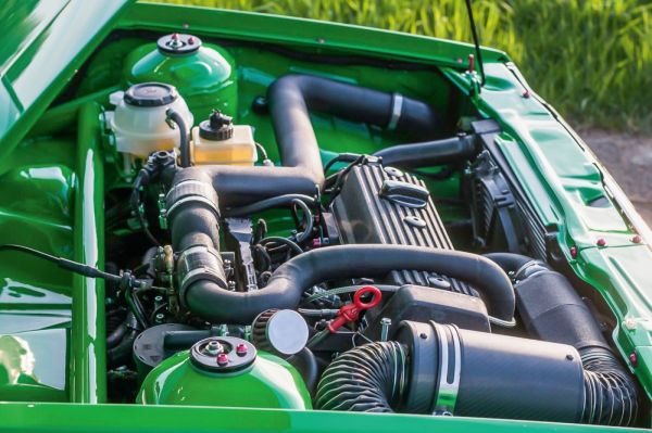 A szóban forgó békazöld VW Polo kabalafigurája Breki, akivel a kocsi részéről csak a szín a hasonlóság. De az telitalálat a vitális kis autónak, a feltűnő színt is a kocsi tulajdonosa, Sebastian Genilke választotta, miként az egész koncepciót ő álmodta meg. Az 1986-os gyártású autó amúgy sem volt elveszett gyermek a kategóriájában, ugyanis abból a korszakból származik, amikor a VW éppen a G-feltöltőkkel kísérletezett. Ezek mechanikus hajtású spirálkompresszorok voltak, felszerelték őket a Polo GT 1,3 literes motorjára, amely így 116 lóerőt tudott, a Golf, valamint a Corrado 1,8 literes blokkján (ezekre nagyobb szállítókapacitásút) pedig így 170 lóerőt termelt – már amikor jól működött…