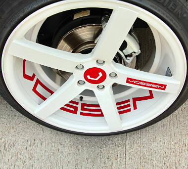 Az autó alá KW Variante 1-es állítható magasságú futóművet szereltek, amellyel nem csak a hasmagasságot csökkentették, sportosabbá is tették a futómű viselkedését. Felniként a fent említett Vossen kínálatából választottak nagyon dögös, ötküllős, CV3-as jelzésű darabokat. A 20 colos felniket fehérre fényezték, a márkafelirat és a jelvény piros. Az első tengelyen a felnik mérete 9×20 col, a gumiké 255/35 ZR20. A hátsó tengelyre 10×20 colos felniket csavaroztak 275/35 ZR20-as gumikkal.