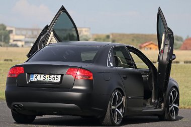 Alapvetően a fólia változtatta meg Baky Peti autójának megjelenését is. Az első szériából való S-Line csomagos Audi A4-es Németországból, 2008-ban került hozzá, majd két év után döntött a mattfekete színről. Akkora nem volt a váltás, hiszen a kocsi amúgy is fekete volt, csak éppen fényes dukkóval. A lényeg a mattításon volt, azonban Peti ezzel el is indult a „lejtőn”.
