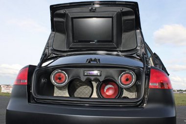 Mondanunk sem kell, hogy ennyiben nem merült ki a dolog. Jött a tetőkárpit átbőrözése, valamint a csomagtartó berendezése. A csomagtérfedélbe applikáltak egy 22 colos Samsung HD-tévét, természetesen szépen körbebőrözve. Persze a többi cucc sem megvetendő: Sony Playstation, két feketére festett MAC Pulsar4-es erősítő, Dragster DSC642-es komponens szett és egy DWH1229-es mélynyomó. Az utastérbe 11 hangszóró fért be!