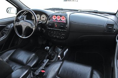Sportos a kupé kormánya, csakúgy, mint a fehér számlapú műszerek és a kiegészítő órák