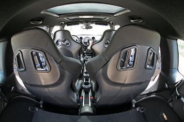 Csökkenti az autó tömegét a négy karbon vázas kagylóülés, és nagyobb lábteret eredményez hátul. Igaz, jó drága is
