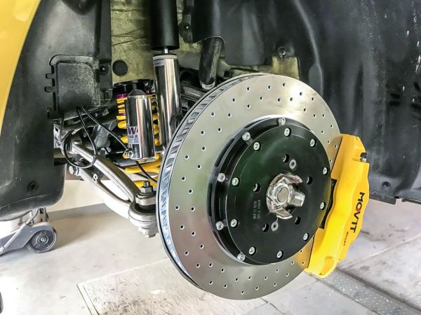 Témánk alanya az előző generációs, F82-es M4-es. Mivel nagyteljesítményű (431 LE) és viszonylag nagy tömegű autóról van szó, így nem mindegy, miként működik a fékberendezése. A gyár elöl négy-, hátul kétdugattyús féknyergekkel, elöl 360, hátul 350 mm átmérőjű tárcsákkal szerelte fel a 0-ról 100-ra 4,3 másodperc alatt katapultáló autót. A tulajdonosi tapasztalatok szerint azonban a gyári fékrendszer hamar túlmelegszik, 3-4 nagyobb fékezés után már búg, darál, és nemcsak egy fura hang, hanem kormányrezonancia is kíséri a jelenséget. Mindemellett elég darabosan adagolható a fékerő, gyorsan „bekap” a rendszer. A megoldást Páva Gábor, a pécsi O.CT tuningműhely vezetője a fékrendszer módosításában találta meg.