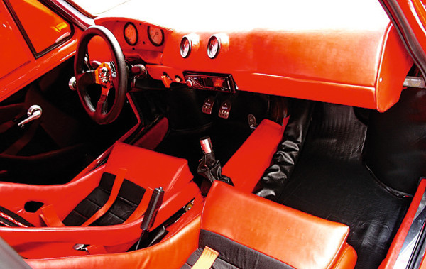 Az utasteret kibelezték, újrarendezték és átkárpitozták Robert Beneš autója végighaladt az átépítés rögös útján: első lépésben teljesen szétszerelte a kocsit, s előbb a hibákat javította ki azokon az elemeken, amelyeket a későbbiekben is megtartandónak ítélt. Pedig nem sok ilyen volt, olyan alaposan átalakította a karosszériát. Mivel motort és futóművet is cserélt, igazán elszabadulhatott a lemezolló. Kiszélesítette mind a négy sárvédőt, átalakította a kocsi homloklemezét, amelyet egybeépített egy spoilerrel. A régi lökhárítót egy krómozott cső helyettesíti. Kihasználta az első csomagtartó adta helyet, s mint a későbbi farosoknál, ide helyezte át a vízhűtőt. Ehhez megnyitotta a csomagtérfedelet elöl és felül is, ahol könnyebben kiléphet a hűtőn átáramlott felmelegedett levegő. Érdekes a szuperszéles hátsó lökhárító, melynek mélyén ott maradt az eredeti motortér-szellőztető nyílás, csak most fémráccsal lezárva. A küszöbök átalakított Rieger idomok, a gyorszáras motortérre hátul keresztirányú krómrácsozatot szerelt, a lökhárítót itt elhagyta.