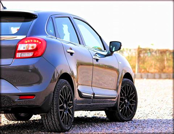 Kívül mindössze karosszériához hasonlóan feketére fényezett, 17 colos Momo Revenge könnyűfém felnik jelentik a változás. Az igazán nagy átalakítással az ajtót feltárva szembesül az ember. Majdnem mindent bőrrel vontak be a műszerfalon, az ajtókárpiton, az üléseken, a maradék helyre a lehető legtöbb esetben igyekeztek nagyon műfának látszó hatású betéteket elhelyezni, és az esetenként meghagyott műanyag elemeket is a bőrkárpit színére fényezték. Nem szórakoztak többszínű belsővel, a látható díszvarrásokon kívül még gyémántmintás részekkel dobták fel a belsőt. A BigDaddyCustoms egy hét alatt végez a Suzuki Baleno utasterének bebőrözésével, az ár 90 ezer rúpia azaz 380 ezer Ft. A felnikért és a Yokohama gumikért 48 ezer rúpiát, azaz 200 ezer Ft-ot kérnek.