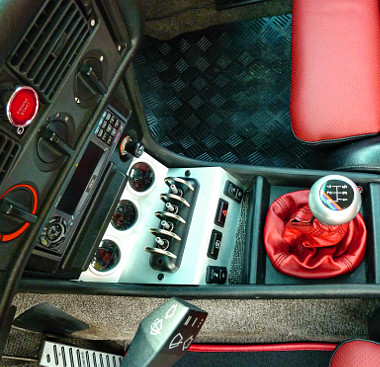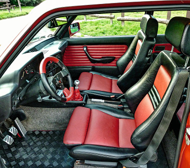 Mikor én fészkeltem be magam a Recaro ülésbe, nem fintorogtam. Egyébként ücsörögni is jó a kocsiban, teljesen újra lett kárpitozva, persze bőrrel, amelyből az ajtókra és a műszerfaltömbre is jutott. Volt, amit Miki többször is áthúzatott, hogy tökéletes legyen. A varrásmintákat pedig az akkor még az én BMW E21-es eredeti prospektusomból nézte, ezt a „bibliát” nemrég elcseréltük egy 1977-es Automobil Revue-ért. Zene is jutott a kocsiba, modern Clarion fejegység, kb. 400 watt teljesítménnyel. Néha ez is kell, de nem kapcsoltuk be.