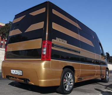 Már csak egy jó színt kellett találni a gyári piros helyett. Elsőre mályvaszínűre fényezték az autót, így futott egy darabig. Utána újabb fényezést kapott, alul grafit-, felül pedig narancs- és bordó színnel. A kocsi a hátsó ajtó átalakítása után kapta meg mai színét, amely a BMW X1-es színválasztékából állt össze, barna alappal, aranyszínű betétekkel, bézs választóvonalakkal. A megfelelő összképhez ütős felni is kellett, de ez sem volt könnyű feladat. Végül az Audi Q7-es könnyűfém keréktárcsáit tették az autó alá, 18 colos méretben, 245/50 R18-as gumikkal – érdekes, hogy a nagy lemezfelület mellett szinte kicsinek hatnak a nagy kerekek.