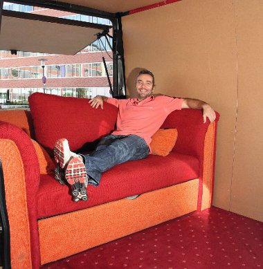 Egyébként a második hifi átépítéskor nyitották egybe a rakteret és a fülkét a válaszfal kibontásával. A lemezdoboz hangos volt, télen meg hideg, így rezgéscsillapító lapokat illesztettek be és 6 mm vastag mdf-lapokkal burkolták a lemezeket, miután tíz centiméteres üveg-kőzetgyapot szigetelést tettek alá. A kényelemről és a raktérben rejlő egyéb lehetőségekről egyedi ágy gondoskodik! Persze a végső változatban nem a csupasz falapokat bámulják majd a vendégek, nem is illene a szőnyegpadlóhoz. Be lesz bőrözve az egész doboz belülről.