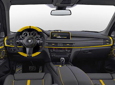 Természetesen a számítógép segítségével tették rá a különféle műanyag alkatrészeket a karosszériára, de leginkább a hatalmas felniken látszik, hogy inkább gyors, mint minőségi munkát végeztek, hiszen össze-vissza állnak a kerekek az autó alatt. A Lumma CLR X6 R elnevezésű alkotásnál 5 centivel szélesítették ki a kerékjáratokat, az átformált első lökhárítóba LED-es menetfények kerültek, karbonból sütötték a küszöbtoldatokat, az első koptatót és a motorháztetőt.