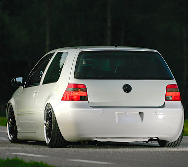Hátra saját építésű hifiinstalláció került. 1×4 csatornás monoblock erősítőt, Infinity kétutas hangszórókat, Alpine R subwoofert, Dietz 3F kondenzátort használt a zeneértő Golf-rajongó. A kocsi alá Koni lengéscsillapítókkal ötvözött légrugós rendszert építettek. A 19-es BBS GT 004-es felnikre 215/35-ös Hankook gumikat húztak.