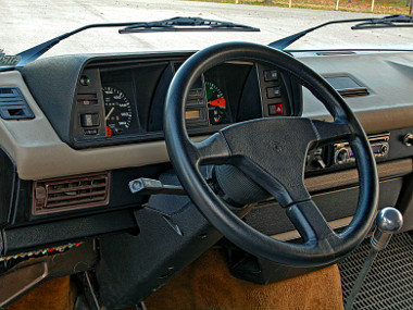 A sportkormány a 80-as évek stílusában, de az autó 91-es