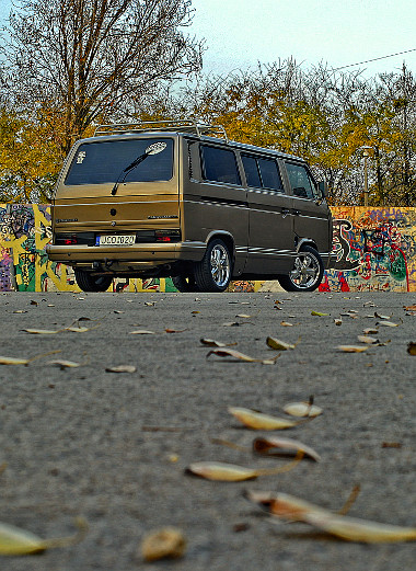 6×15 colos polírozott Fuchs replika felnik a VW buszon, színezett üvegek és spoilerszett teszi vonzóvá a VW T3-ast