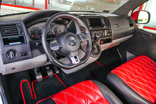 Mutatós az üléshuzat Ma már teljes az utasfülke átalakulása, az ülések után ugyanis következett a tetőkárpit, az ajtópanelek és a szőnyegezés; levedlette régi bőrét a belső tér. Háromküllős, alul vágott, multifunkciós bőrkormányt szereltek be, az üléseket pedig fehér cérnával varrt szürke/piros bőrrel kárpitozták, középen steppelt felülettel. A tető és az oszlopok sötétszürkék, s az ajtók belső kilincse is bőrbetétet kapott.