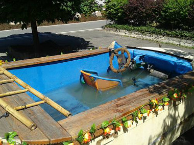 Még a sokat látott német motorosrendőr is meglepődött, amikor egy medence jött vele szembe Eibenstocker város Blauenthal városrészében. Először az tűnt fel a 44 éves járőrnek, hogy nincs rendszám a BMW-n, majd amikor az elhaladt mellette látta, hogy vízzel van tele az utastér, amelyben a vezetőn kívül még ketten ülnek, a negyedik jómadár a kalaptartón ülve a lábát áztatta a medencében.