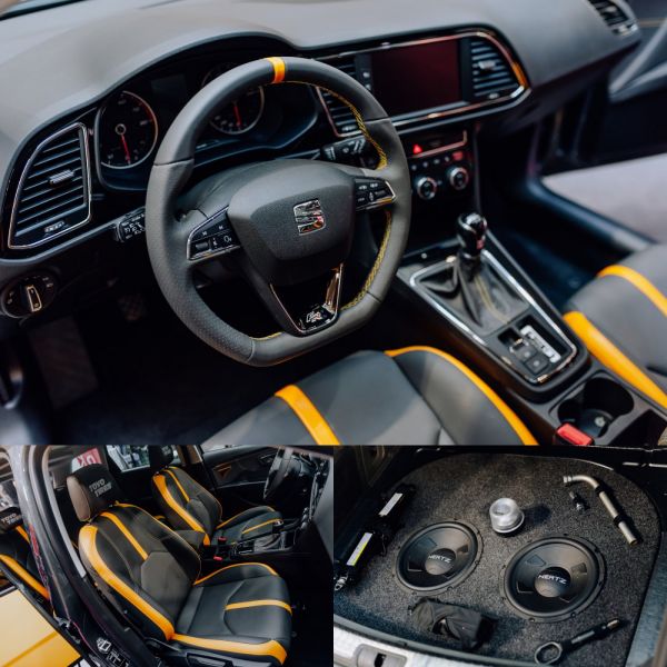 A 2018-as évjáratú Seat Leont a DasWeltAuto kínálatából választotta Nokta Balázs és Szőke László, az AMTS alapítói, az autóhoz pedig egy 1 éves teljeskörű garancia is jár. Az átépítés során a szabályok engedte kereteken belül dolgoztak, az alkotóelemek mindegyike típusazonos és minőségi, legyen az optikai, hifi, vagy éppen futóműkomponens.