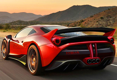 Nem kell rögtön kétségbe esniük, hiszen az eddig Mercedes- és Porsche karosszéria átépítő készletek készítésével foglalkozó Mischa Designs elkészítette első Ferrari-átépítését, ami meglepően lendületesre sikeredett. Mármint a számítógépen, hiszen egyelőre csak virtuálisan készültek el az átépítéssel. Nem egyszerűen csak szárnyakat aggattak karosszériára, de teljesen új sárvédőket is készítettek (hátul oldalanként 7,5 centivel lett szélesebb az autó), no meg olyan hatalmas hátsó szárnyat is lehet kérni, ami mindenki számára nyilvánvalóvá teszi, hogy az előtte haladó autó sofőrje már klinikai szintű feltűnési viszketegségben szenved.
