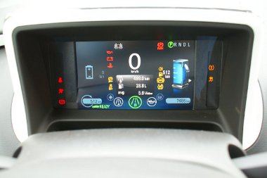 Utóbbinak már csak azért is örültem, mert majdnem üres akkumulátorral kaptam meg az autót, és valamiért az én házam elektromos árama se kellett neki – pedig korábban a Citroën C-Zéro, a Mitsubishi i-MiEV és a Peugeot iOn is gond nélkül tankolt a konnektoromból. Földelési gond? Feszültségingadozás? Nem tudom. Mindenesetre most meglehetősen vegyes a „kockaházam” elektromos rendszere, a villanyóra környékén már réz drót van, másutt még sorba kötött alumínium. Ezért a 2,5 nap alatt gyakorlatilag végig benzinnel üzemelt az autó, a fedélzeti számítógép szerint 5,6 l/100 km-nek megfelelő átlagfogyasztást jelent.