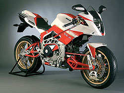 Mindenesetre a hatfokozatú váltóval és Magnetti Marelli vezérlésű injektorral párosított, 95 lóerős léghűtéses blokk tökéletesen passzol a kompakt vázba, s annak tükrében, hogy a jármű száraz tömege mindössze 168 kilogramm, valószínűleg a csillagrombolókat is magunk mögött hagyhatjuk egy esetleges összecsapásnál. Problémát csupán az aszteroidamezők okozhatnának, szerencsére azonban a lassítás kérdését sem vették félvállról a mérnökök – két radiálisan felfogatott, négydugattyús Brembo nyereg és két úszóágyazású 320-as tárcsa dolgozik elöl, valamint egy kétdugattyús kistestvér illetve 220-as tárcsa hátul. Adagolhatóságukról egyelőre nincsenek információink, annyit viszont tudunk, hogy a rendszer kovácsolt alumíniumfelnikre került, a tengelytáv 1390 milliméter.