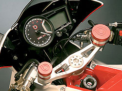 Elemenként vizsgálva egyértelműen kiderül, hogy mit jelent a „tudás legjava”. Itt van például az állítható geometriájú, vízszintes lengővillával és függőcsapszeges kormányzással operáló első futómű: csővázas szerkezete és húzórugóval megoldott csillapítása annyira kifinomult, hogy néhányan a sötét oldal cselszövését sejtik a háttérben. Állítólag fékezésnél nem bólint a motor, nagy sebességű kanyarvételnél nincs kormányszitálás, no és olyan reakcióidőkkel számolhatunk, ami a hagyományos villánál elképzelhetetlen. Ráadásul a tömege jócskán alulmúlja a tradicionális villákét, így a menetteljesítményeket is kedvezően befolyásolja. Hátul majdnem azonos szisztémát találunk, sőt az állítható húzó- és nyomócsillapítás mellett a rugóelőfeszítést is magunk kalibrálhatjuk.