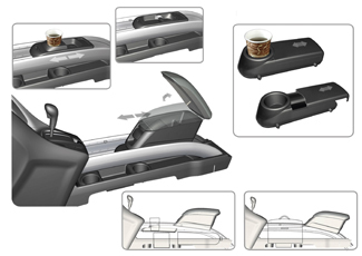 A FlexRail középkonzol rengeteg lehetőséget kínál a poharak és az apróbb tárgyak elhelyezésére