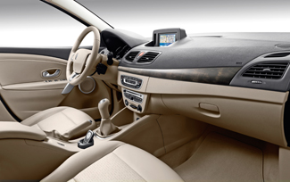 Belül minden maradt a régiben, a műszerfal, a kezelőszervek kialakítása akár a Mégane-ban. A Fluence igazi ütőkártyája az 530 literes csomagtere, mely a 60:40 arányban osztva dönthető hátsó ülések révén egészen jól variálható. A szedánok többségével szemben sikerült úgy elérni a karosszéria kívánt merevségét, hogy az utas- és a raktér közé nem kellett vaskos, az átrakodónyílást szűkítő acélelemeket beépíteni. A hátsó küszöb 727 mm-re van a földtől, a raktérajtó nyílása pedig 1020 mm széles.
