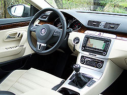Igazán tetszetős és harmonikus a CC külseje: szemből kísértetiesen hasonlít a normál Passatra, de a hátulja már egészen új. A szedánnál 31 mm-el hosszabb, 36-tal szélesebb, valamint 50-nel alacsonyabb a kupé. A kurta csomagtérajtó magasra emelkedik, a lámpatestek esztétikusan beleolvadnak a kocsi oldalvonalába. Az 535 literes raktér padlója alatt nem lapul pótkerék, sem defektjavító szett. Ennek oka, hogy a Continental abroncsok belsejét speciális javítómasszával látták el, mely defekt esetén azonnal „befoltozza” az akár