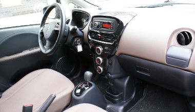 Sokkal több figyelmet érdemel a barna bőrrel gazdagon bevont műszerfal, amelynek anyaghasználata sokat fejlődött a prototípushoz képest. Gazdag a szériafelszerelés, hat légzsák, ESP, CD-s rádió is van a fedélzeten, ennek ellenére azonban nyugodtan lehet szegényesnek nevezni a felszereltséget. Ami ugyanis egy mikroautónál dicséretes, az egy tízmillió forintba kerülő autónál még az elvárható minimum szintjét se nagyon üti meg.
