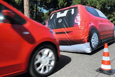 Ahogy a korábbi, úgy a mostani alcímet is a VW-től csórtam, második fele ugyanis a minik kategóriájában először elérhető koccanásgátlóra utal. A szélvédő mögül lézeroptika vizslatja a kocsi előtti 10 méteres területet, és balesetveszély esetén (5-30 km/órás sebesség között) vészfékezést hajt végre, ha a vezető elbambul és nem reagál. Szóval jól fékez, de hogy megy?