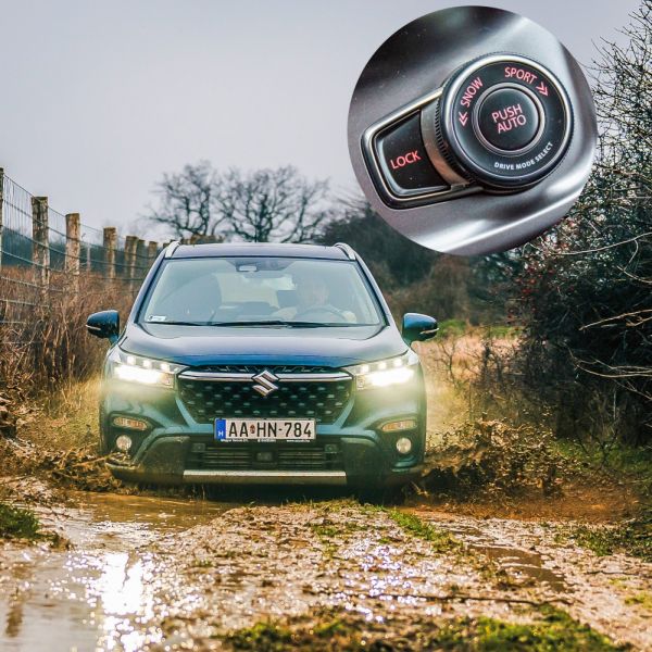 Az AllGrip Select választása esetén a vezető is beleszólhat a rendszer működésébe, ebben az elektronika siet a segítségére. A látványos extraként az S-Cross és a Vitara első ülései közé beépített tárcsával sem kell mindenképpen bűvészkedni, Auto állásban hasonlóan működik, mint az Ignis és a Swift hajtáslánca, viszont itt már van választási lehetőség. A Sport üzemmód nem is terepre való, itt több nyomaték jut a hátsó kerekekre, és a gázreakcióra is pozitív hatással van, a Snow, vagyis hó állással arra vehetjük rá az autót, hogy készüljön fel a csúszós felületekre, Lock üzemmódba pedig akkor érdemes kapcsolni, ha belesüppedünk egy laza talajba, és a hátsó kerekekre jutó maximális nyomatékra van szükség a kijutáshoz. Attól nem kell tartani, hogy megfeledkezünk róla, mert 60 km/órás tempó felett önállóan visszakapcsol Snow üzemmódba. Az esztergomi pároshoz választható extra felára egységesen 750 000 Ft, a legolcsóbb összkerekes Vitara 8 640 000, az S-Cross viszont 9 150 000 Ft-ba kerül. Akinek ennél is komolyabb tudásra van szüksége, a jelenleg csak haszonjárműként rendelhető Jimny-ben találja meg, a szerethető terepjáró az AllGrip Pro hajtással 8 450 000 Ft-tól elérhető.
