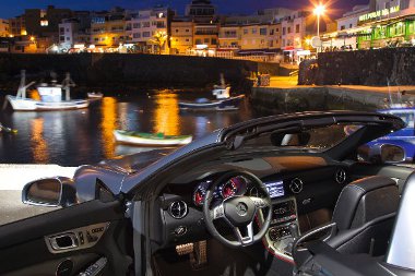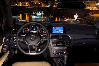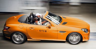 A sztriptízshow 20 másodpercig tart, de menet közben csupán 5 km/órás sebességig hajlandó vetkőzni a Merci. Erre a könyöklő előtti, felhajtható panel alatt található kapcsolóval ösztönözhetjük, melynek kidolgozása felettébb igényes. Akárcsak az egész pilótafülke! Habár a multifunkciós sportkormány, a műszeregység és a négy kerek szellőzőrostély újfent az SLS AMG-re utal, a belső hangulat túlságosan disztingvált ahhoz, hogy meglóduljon tőle az ember fantáziája. Persze elszunyókálni nem fogunk az SLK volánja mögött!
