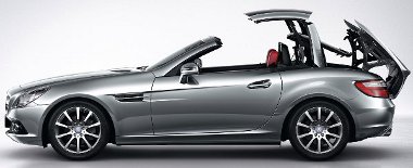 Nyitott roadsterként és zárt sportkupéként egyaránt harmonikus látványt nyújt az SLK. Ha már itt tartunk, háromféle felső közül választhatjuk ki, hogy melyiket hordja a kocsink: a karosszéria színére fényezett könnyűfém tető helyett üvegtető (145 000 Ft) vagy a változtatható fényáteresztő képességű Magic Sky Control (722 500 Ft) rendelhető.