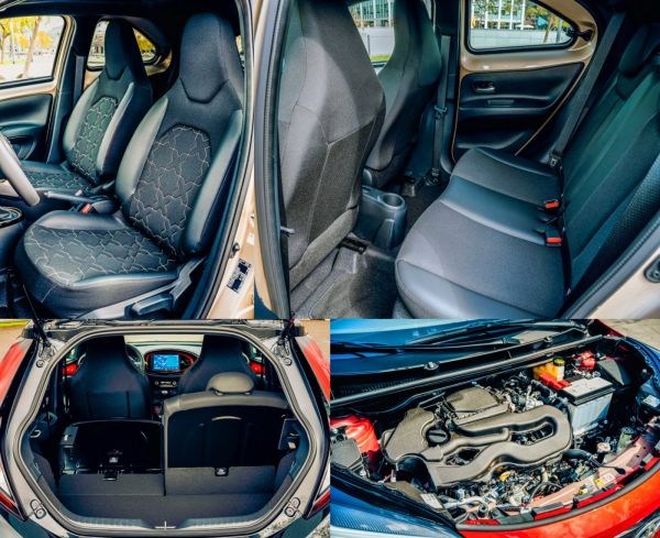 Teljesen új alapra helyezték át a modellt, egészen pontosan ugyanarra a TNGA-B padlóra, amelyet a Yaris is használ (a hátsó padlórész egyedi), aminek az oka, hogy a Toyota megvásárolta a korábban a PSA-val közös csehországi gyárat, ahol a miniautó mellett már a kisautót is gyártják. Az Aygo X minden irányban jelentősen bővült, miközben a saját tömeg csökkent, szóval az ügyfél csak az előnyét tapasztalja a váltásnak – feltéve, ha nincs szüksége nagy ajtóra. Az új generációból már csak ötajtóst gyártanak, ami meggyorsítja az utascserét, de a hátsó ajtók mérete azért elég szűkös. Ha túljut az ember a szűk keresztmetszeten, alacsony fejtérrel szembesül, a tér passzentos – a konkurenciánál van ennél nagyvonalúbb kialakítás. Az elöl ülők kapják a figyelmet, például csak az ő üléseikre jut a díszvarrás a gazdagon felszerelt modelleknél.