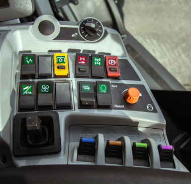 Erőátvitel: Eccom 4.5 hidrosztatikusmechanikus hajtómű, 0,5 és 50 km/óra között, összkerékhajtás
