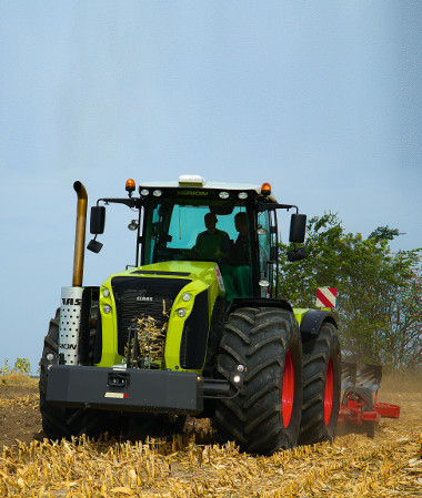 Szeretnék szántani, hat ökröt hajtani – szól a régi nóta. Anno ez volt a béres vágyainak netovábbja. Én hat ökörcsorda erejével, hatos ekével állhatok neki a műveletnek. A Xerion, a maga 450 lóerőjével, természetesen arra való, hogy 12-es ekét húzzon, de a próba napján épp nem volt kéznél ilyen, és mivel úgysem komoly földművelésről, csak újságírói benyomásszerzésről volt szó, elfogadtuk a helyzetet. A földúton átveszem a volánt, és elégedetten konstatálom, hogy magaslesemről pontosan tudom kormányozni a gépet, még a benyúló akácágakat is elkerülve, nehogy karcolódjék a fényezés. Persze semmi visszajelzést nem ad a kormány, és mivel teljesen hidraulikus a működése, tehát nincs mechanikus kapcsolat a volán és a kerekek között, mindig máshol van a kormánykerék középállása, de ilyen tempónál ezek nem zavarók.