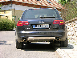 Az ugyancsak alumíniumból kialakított tetősínek négy tartóra támaszkodnak. A küszöb borítása éppúgy a masszív erő érzetét sugározza, mint a sárvédők szélesítései. A keréktárcsák 17, illetve 18 col átmérőjűek, s háromféle dizájnnal állnak rendelkezésre. Az A6 allroad quattro hátulról többek között a nemesacél alsó védőlemezről és a lökhárító alumíniumhatású díszlécéről ismerhető fel. A „Xenon-plus” fényszórók megrendelésekor a hátsó lámpák LED-egységet is tartalmaznak, ez esetben a féklámpa és a hátsó helyzetjelző számára.