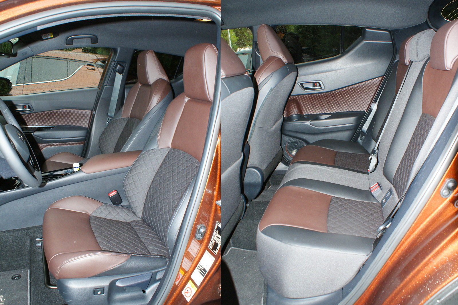 Amíg látványra a Nissan Juke-nál is merészebb autó a C-HR, külméreteiben már a Qashqai ellenfele. Sajnos az alapterületből rengeteg hely megy el a lemezhullámok javára, így az utastér nem olyan tágas, mint azt a centik sugallják. A csomagtér 377 literes, de legalább egyenes falakkal határolt, tehát jól kihasználható a forma – a padló alatt lapul a defektszett. Szerencsére nem csak a centik árulkodnak a kompakt kategóriáról, az autó kifinomultsága és viselkedése is erre utal. Amin még lehetne javítani: a kerékjárat felől tompítatlanul jönnek a zajok, nemcsak az abroncs surrogása, de amikor fényképezés miatt egy murvás parkolóban pörögtünk egy keveset, a fémlemezen kopogó kavicsok dörrenése géppuska-sorozatra hasonlított. A hátsó ülésen helyet foglalva egy másik zajforrást is találtam, diszkréten susog a levegő a hatalmas méretű tetőspoileren, amelyet az itt utazók hallanak, előre már nem ér el. Azon nem csodálkozom, hogy a második sorban hozzáér a hajam a tetőkárpithoz, az 190 centis magasságommal ez előfordul, de elöl is ezzel szembesültem: olyan magasan van az ülőlap a padlóhoz képest, hogy a nyomott mintával ellátott tetőkárpitot súrolta a fejem. Az üléspozíció egyébként kellemes, meredek derékkal ül az ember, a lábai is kényelmes szögben vannak, hátul pedig a lábfejnek is van hely az ülőlap alatt. Szépséghibánál több bosszúságot okozhat, hogy áramvételezési lehetőség egy USB-, egy szivargyújtó és egy vonalbemenet csatlakozót jelent, ami a mai világban – különösen egy fiataloknak szánt autónál – hamar kevésnek bizonyulhat.