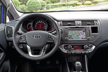 Beszállva is értékes, határozottan komoly kisautó benyomását kelti a Rio! A belső hangulatát a választható fekete, szürke vagy barna színvilág határozhatja meg, a felhasznált anyagok és a kidolgozás minősége pedig szokatlanul igényes ebben a kategóriában. Persze ezt nem árt némi fenntartással kezelni, merthogy a menetpróbára gazdagon felszerelt kocsikat hoztak – kíváncsi lennék egy alapkivitelre. Ha már itt tartunk, az extralistán olyan tételek is szerepelnek, melyek a konkurenciánál ritkaságszámba mennek vagy el sem érhetők: például kulcs nélküli nyitás és indítás, fűthető első ülések és kormány, valamint 7 colos érintőképernyős navigáció és tolatókamera!
