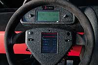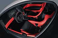 A kétszemélyes fülkében mindössze a műszerek árnyékolója és a középkonzol formája emlékeztet a valódira, amúgy mindent a vezetés puritán élményének rendeltek alá. A szükségszerűen egyszerű műszerfal és az utastér vörös-fekete színkombinációja csak még inkább kiélezi a versenyhangulatot, de vérbeli sportkocsiból származik a kormány is, amit a kagylóülésekbe szegezett pilóta markol. Ennek további érdekessége, hogy központi kijelzőjén rendkívül precíz, műholdas térképészeti adatok segítségével megjeleníthető az ideális versenyvonal, s az össze is vethető a legutóbb teljesített körrel.