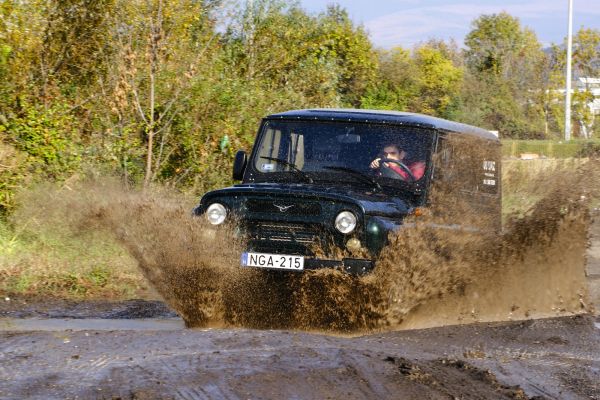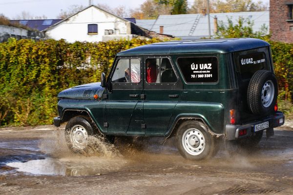 Bár aszfalton is hamar eléri és minden erőfeszítés nélkül megfutja a 90 km/órás tempót, mégis a pocsolyából pocsolyába ugratás áll jobban az UAZ-nak. Itt elemében van a technika, nincs gond a szigeteléssel és az összeszereléssel sem, a buckák között csak a szerszámkészlet és az övcsatok csapnak zajt. Puritánsága inkább előnyére, mintsem hátrányára válik, a Lada 4×4-et kivéve minden új riválisánál felszabadultabban használhatjuk arra, amire szánták. Minden kényelmet és díszítést nélkülöző utasterébe már a beszállás is egy feladat, a ferdén kivágott ajtónyílások kicsik, emiatt az első ülés a hátraszállás útjában van, cserében a hátsó ablakon is ki lehet nézni balra fordulásnál. A hátsó ülés ággyá alakítható, ez a legtöbb erőfeszítést és türelmet igénylő művelet a nehezen hozzáférhető és mozgó tekerős állító miatt. Ennyi kényelmetlenséget megér, hogy egy vadonatúj veteránnal járhassunk, nem vagyok meglepve, hogy a badacsonyi UAZ-ok helyett is újakat rendeltek: a Hunter aktuális árfolyamon számolva 4,1 millió Ft-os vételára alig több, mint egy sokat látott 469-es felújítási költsége, ezzel pedig egyetlen nyugati gyártó sem tud versenyezni.