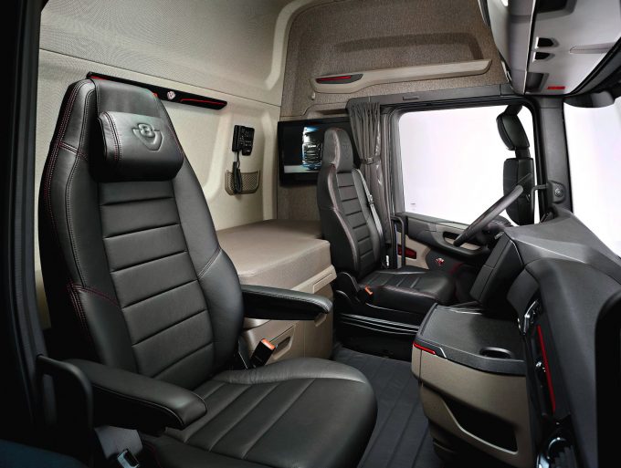 Az eddigi csúcsmodellre, az R szériára is rálicitál ugyanis a gazdagon felszerelt, sík padlós, nagy fülkés S széria. A fülkék 51 milliméterrel hosszabbak, magasságuk pedig normál tetővel 10, magas tetővel 16 centivel gyarapodott. A vezetőülést néhány centivel előrébb és balra helyezték, amelytől nemcsak az élettér vált tágasabbá. Az alacsonyabb műszerfallal és vékonyabb A-oszloppal együtt jobb kilátást és kisebb holtteret eredményez. Szintén e cél érdekében, elsőként tették elektromos állításúvá a homlok- és jobb felső holttértükröt is, a sofőrök egy része ugyanis nem vette a fáradságot, hogy felmásszon és beállítsa az életmentő visszapillantókat. Az eredmény anélkül is feltűnik vezetés közben, hogy külön felhívnák rá a figyelmet. Az előrébb beépített első tengely az alacsonyabb súlypont , illetve a nagyobb fékkamra pedig a fékutat rövidíti le 5%-kal. Sokat javít a passzív biztonságon a világelsőként bemutatott függönylégzsák is, a kamionokban mindeddig ugyanis csak első légzsákok védték a bent ülőket. A megerősített fülke persze nemcsak biztonságos, hanem komfortos is. A legkényelmesebb összeállítással a fekhely akár 100 centiméter szélességű is lehet, az utasülés pedig forgatható, mellette asztalt rejt a műszerfal. A tető alatt elöl és hátul három-három tágas szekrény, az ágy alatt pedig két-két, kívülről is elérhető rekesz fogadja a csomagokat, no meg frizsider, illetve elemózsiás doboz.