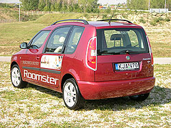 kényelmes be- és kiszállást biztosítanak. A külső ajtókilincseket függőlegesen, röviddel a C-oszlop elé, a karosszéria vázszerkezetének borításába építették, így harmonikusan illeszkednek a jármű oldalnézetének képébe. Hátul a magas tetőperem a Roomster kínálta sokrétű szállítási lehetőségekre utal. A karcsú, sarlóalakú hátsó lámpatesteket a D-oszlopban, magasan helyezték el. A helyzetjelző a koda Octavia és Octavia Combi modellekéhez hasonlóan C-alakú felületet világít át, a Roomster hátulról így sötétben is egyből a koda-család tagjaként azonosítható.