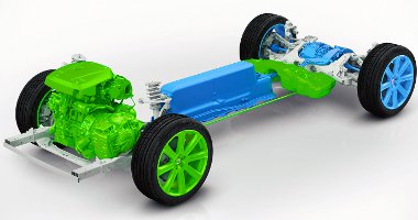 Virtuális összkerékhajtás: a benzinmotor elöl, a villanymotor hátul hajt. Az akkut a középalagútba építették