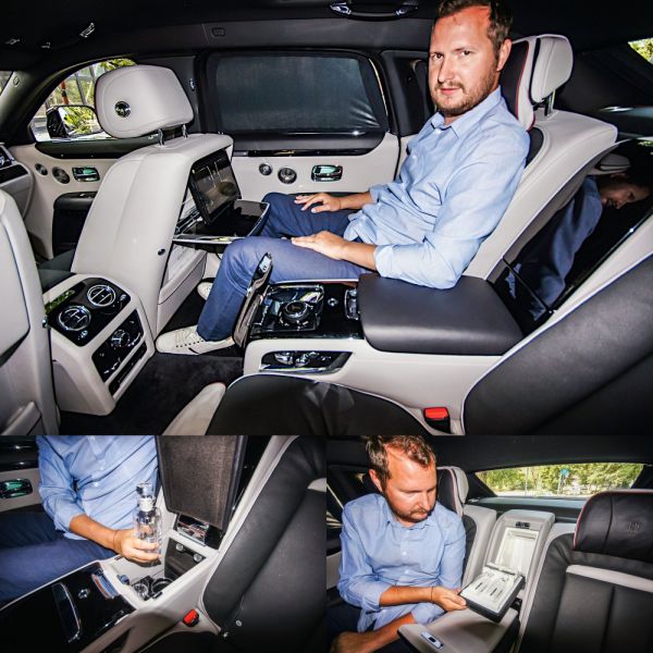Elsőre soknak tűnhet, de jelen esetben arról van szó, hogy 5,5 vagy 5,7 méteres karosszériával manőverezünk; ebben a kategóriában már elhanyagolható az eltérés, hiszen mindig túlméretes parkolóhely után kell néznünk. Igen, indokolt az többes szám első személy használata, hiszen a Ghost kifejezetten azoknak az ügyfeleknek készül, akik saját maguk akarják vezetni autójukat, a nyújtott karosszériára pedig azért van szükségük, mert néhanapján bizony sofőr szolgálataira kell hagyatkozniuk, amikor eseményre mennek (alkoholos italok…), vagy néha olyan sok a teendőjük, hogy az autóban is kell dolgozniuk, és olyankor a hátsó ülésen foglalnak helyet. Szóval ilyen vészhelyzetekre gondolva alkották meg a Ghost EWB-kivitelét.